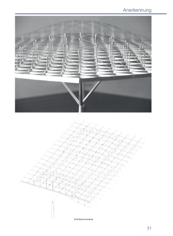 Im Vertiefungsgebiet Tragkonstruktion entstand Das Dach, im Raster von 250x250 cm, ruht auf
