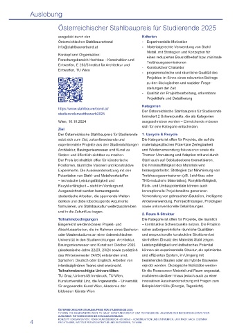 Wien, 16.10.2024 ausgeschrieben werden – Einreichende müssen jedoch maximal 1 Stimme), dem Preisträger info@stahlbauverband.at erwünscht.