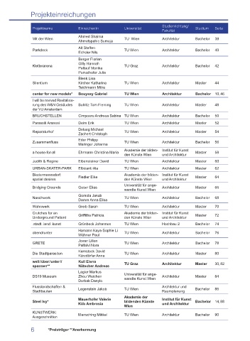 Projektname Einreicher:in Universität Studium Seite Projektname Einreicher:in Universität Studium Seite
